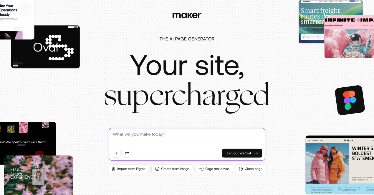 With Maker, you can turn any idea into a fully designed website in seconds. Just import from Figma, start from an image, give your current page a makeover, or clone an existing one. Itβs fast, flexible, and built to supercharge your site creation process.